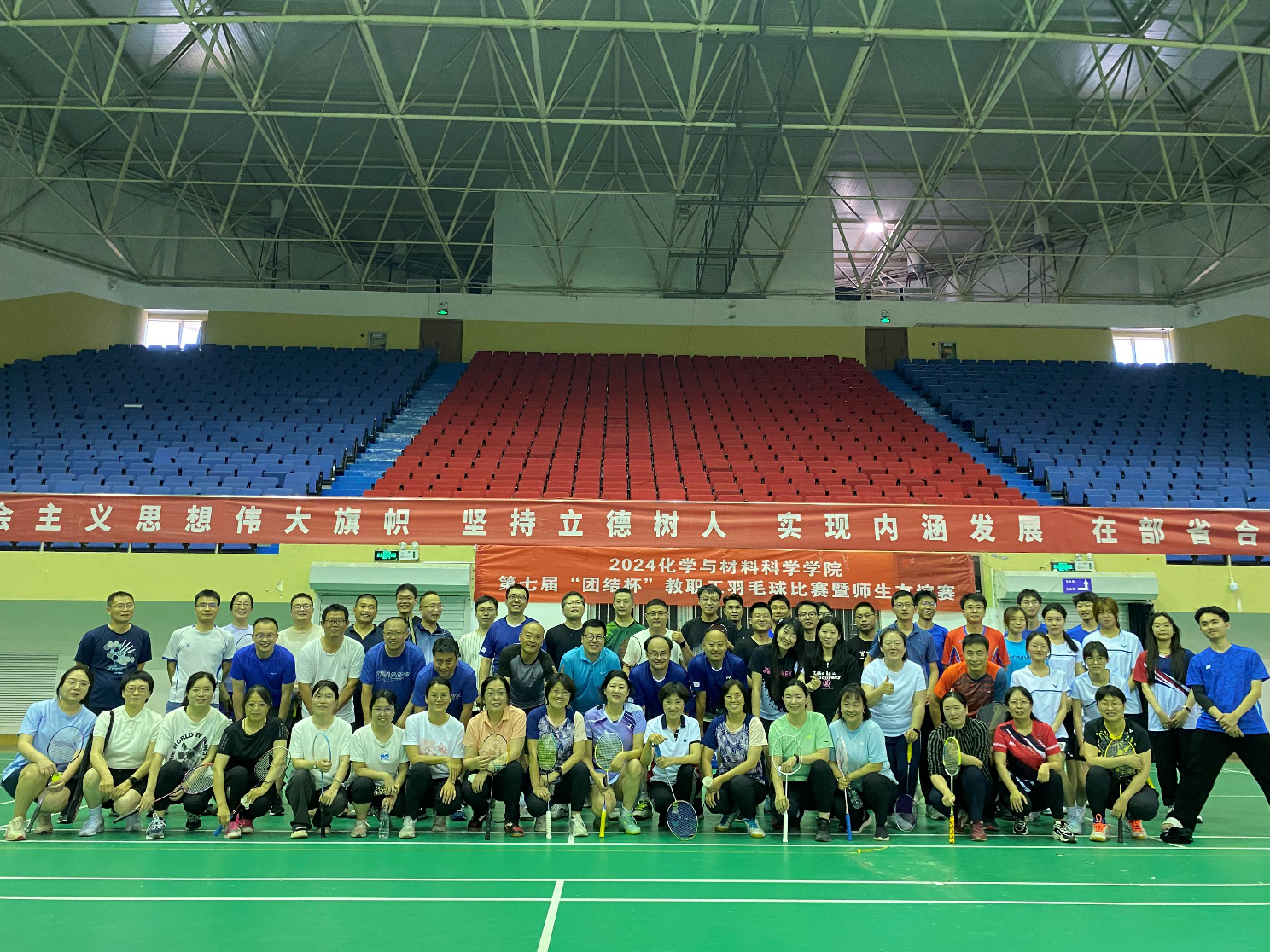 5月30日下午,化学与材料科学学院在五四路校区多功能馆举办了第七届“团结杯”教职工羽毛球比赛暨师生友谊赛。学院80多位老师和30多名学生踊跃报名参加了比赛。 比赛以双打方式进行,采用“五羽伦比”羽毛球赛事规则...