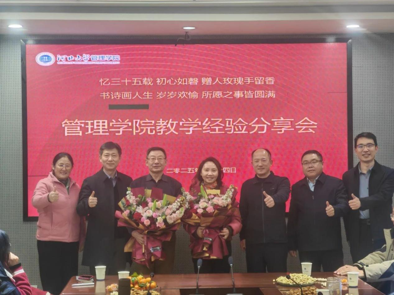 2025年1月14日,管理学院举办教师荣休暨教学经验分享活动。荣休教师、学院领导、教师代表参加了活动。党委书记赵林涛主持荣休仪式。荣休仪式上,院长杨文杰为陈文华、王宗萍两位退休教师颁发了荣誉证书。两位老师回顾了各自的工作经历,表达了对学校、学院的深厚感情和美好祝愿,并将自己宝贵的经验和心得无私地分享给在场的教师。与会教师纷纷发言,为两位老师送上美好的祝福。祝福两位老师开启更加精彩的人生里程,希望他们继续关心支持学院发展,共同见证学校美好的未来。